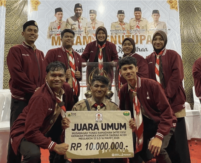 Kafilah Kwarcab Pramuka Aceh Besar meraih juara umum Musabaqah Tunas Ramadhan ke XXIV Tahun 2025 si Meulaboh Aceh Barat.