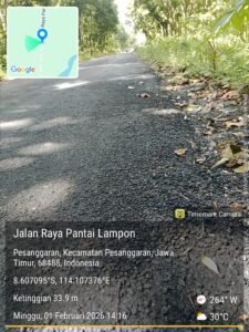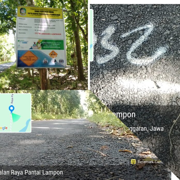 BANYUWANGI – Proyek rehabilitasi Jalan Pasar Pesanggaran–Pantai Lampon dengan nilai anggaran Rp 448 juta yang dilaksanakan oleh CV Tri Anggara Konstruksi menuai sorotan tajam dari masyarakat. Pasalnya, pekerjaan hotmix yang baru berusia sekitar satu bulan sudah menunjukkan indikasi kerusakan dini.