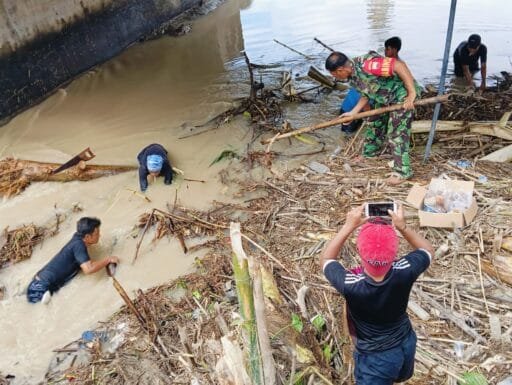 “Dengan membersihan sampah dan rumput liar, maka aliran air menjadi lancar dan tidak meluap saat hujan, sehingga bisa mencegah terjadinya banjir ke pemukiman masyarakat,” terang Sertu Daswir.