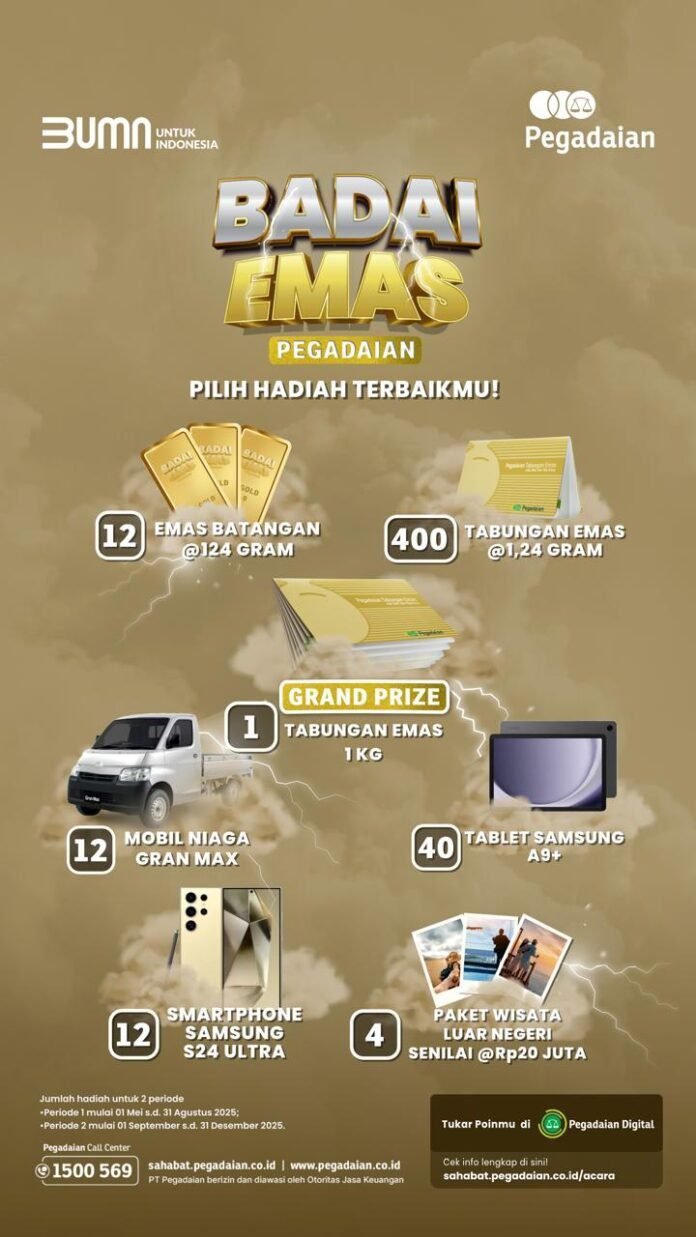 Redakai.co | Palembang, – PT. Pegadaian kembali menghadirkan program loyalitas berupa undian berhadiah melalui Program Badai Emas Pegadaian 2025.