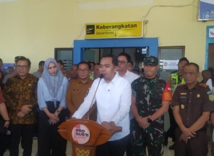 JEMBER, redaksi.co – Penerbangan reguler perdana Jember–Jakarta resmi beroperasi Selasa (23/9/2025) melalui Bandara Notohadinegoro. Momentum ini ditandai tasyakuran dan pemotongan tumpeng oleh Bupati Jember, Muhammad Fawait (Gus Fawait), bersama Forkopimda dan pihak terkait.