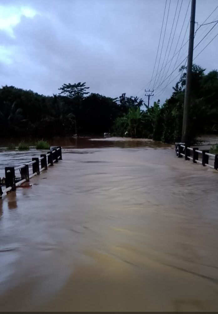 Akibat tingginya debit air, jembatan penghubung utama di jalur tersebut tergenang dan tidak dapat dilalui kendaraan. Kondisi ini membuat akses transportasi warga untuk sementara terputus dan aktivitas masyarakat di kedua desa menjadi terganggu.