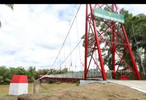 Bersama Danrem,Bupati Tarmizi Resmikan Jembatan Gantung Penghubung Gampong Tungkop Di Sungai Mas