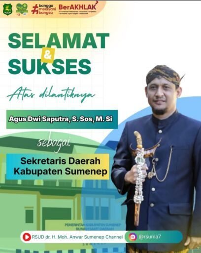 Segenap jajaran direksi dan manajemen Rumah Sakit Umum Daerah dr. Moh.Anwar (RSUDMA) Sumenep, menyampaikan ucapan selamat dan sukses atas pelantikan Agus Dwi Saputra,S.Sos, M.Si sebagai Sekretaris Daerah (Sekda) Kabupaten Sumenep yang baru.