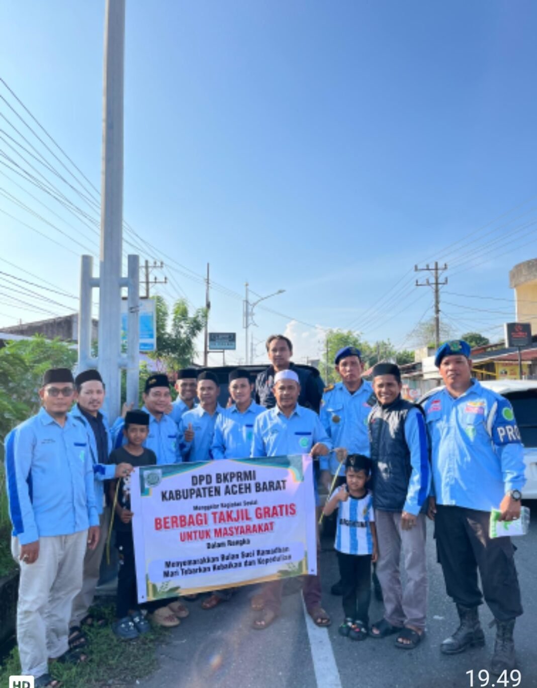 Berbagi takjil gratis ini diberikan langsung dari DPD BKPRMI Aceh Barat kepada warga yang melintas di jalan