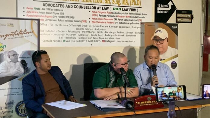 JAKARTA – David Rahardja, didampingi kuasa hukumnya Dr. H. Razman Arif Nasution, S.H., S.Ag., M.A., Ph.D dari RAN Law Firm, menggelar konferensi pers pada Sabtu (22/3/2025) di kantor RAN Law Firm, Rasuna Office Park, Jakarta Selatan. Mereka melayangkan tuntutan hukum terhadap Kepala Cabang BRI Veteran, Didi Tri Haryanto, atas dugaan maladministrasi dan/atau pemufakatan jahat yang mengakibatkan kerugian materiil Rp 20 miliar dan immateriil Rp 40 miliar.