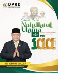 PemerintahanBudi Azhar Mutawali, S.IP Ketua DPRD Kab.Sukabumi : Selamat Harlah Nahdatul Ulama ke 100 TahunPenulis Abdul Salam Spd - 4 Februari 2026018BagikanFacebookTwitterWhatsAppTelegram Budi Azhar Mutawali, S.IP Ketua DPRD Kab.Sukabumi Mengucapkan Selamat Harlah Nahdatul Ulama ke 100 Tahun