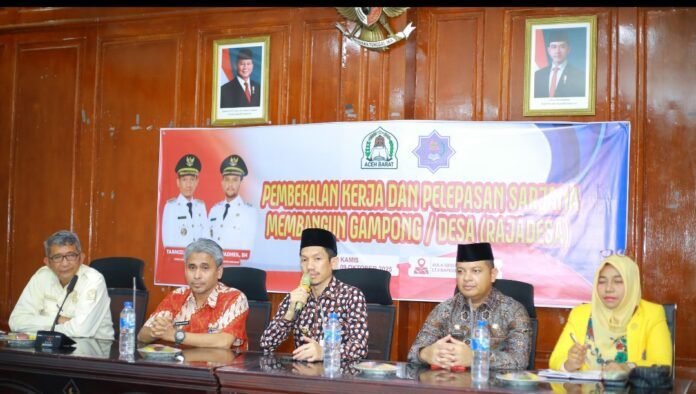 Semangat membangun Gampong kian terasa di Aceh Barat ,Bupati Tarmizi, SP, MM melepas para peserta program Sarjana Membangun Desa (Gampong) (RajaDesa) di Aula Cut Nyak Dhien, Kantor Bappeda.Kamis 9/10/2025