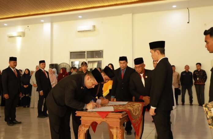Bupati Aceh Barat, Tarmizi, SP, MM, melantik dan mengambil sumpah jabatan sejumlah pejabat struktural dan fungsional di lingkungan Pemerintah Kabupaten Aceh Barat. Pelantikan berlangsung di Aula Bappeda Aceh Barat, Jumat ,30/1/2026.
