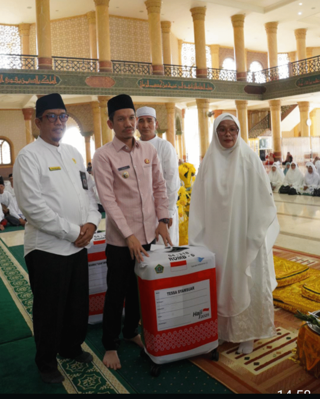 Suasana haru dan khidmat mewarnai acara peusijuk dan pelepasan 183 Jamaah Calon Haji (JCH) asal Kabupaten Aceh Barat yang akan menunaikan ibadah haji ke Tanah Suci Mekkah. Acara ini berlangsung di Masjid agung baitul makmur meulaboh, Aceh Barat, Kamis 15/5/2025 dihadiri oleh para keluarga jamaah serta unsur Forkopimda.