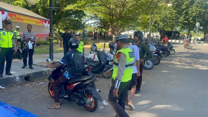 Dalam kegiatan tersebut, petugas memberikan imbauan secara humanis kepada pengendara yang masih melakukan pelanggaran lalu lintas, seperti tidak menggunakan helm standar, kendaraan tidak dilengkapi kaca spion, serta penggunaan knalpot tidak sesuai spesifikasi teknis atau knalpot brong yang dapat mengganggu ketertiban umum dan kenyamanan masyarakat.