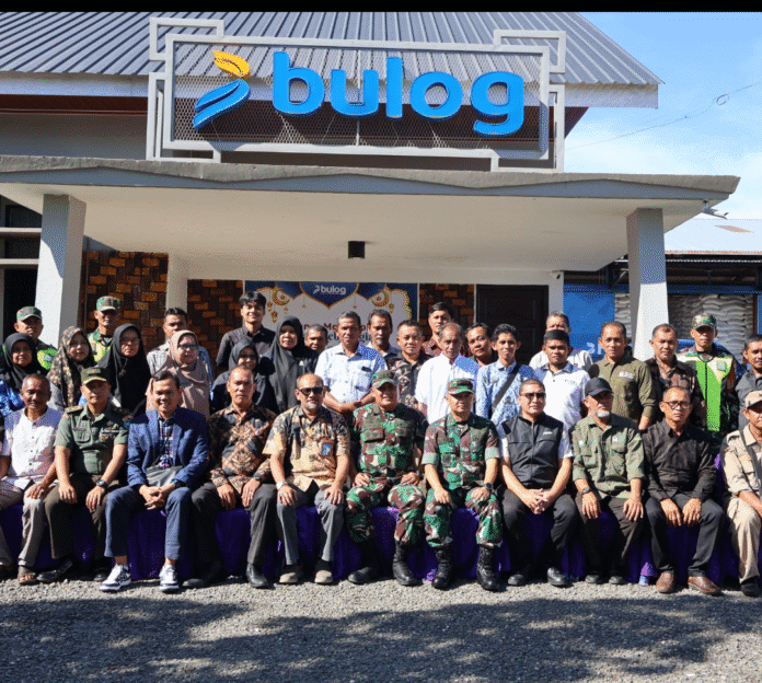Dandim 0105/Abar Letkol Inf Hendra Mirza, S.E., M.Si., bersama instansi terkait dampingi rombongan Aster Kasdam IM dan Kanwil Bulog Aceh memonitoring Serapan Gabah (Sergab) di Kancab Perum Bulog Meulaboh yang berada di Jalan Nasional Meulaboh – Tapak Tuan Desa Gampong Darat Kecamatan Johan Pahlawan, Jum’at (18/4/2025)