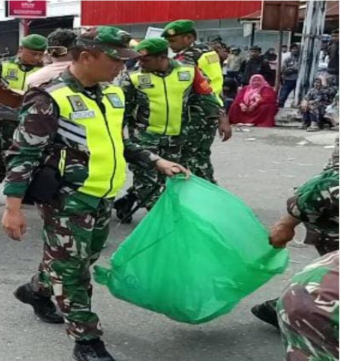 Di tengah berlangsungnya unjuk rasa yang dijaga ketat oleh aparat keamanan, sejumlah anggota Kodim 0105/Abar terlihat melakukan aksi pengumpulan sampah di sekitar lokasi demo, aksi ini dilakukan secara sukarela sebagai bagian dari upaya menjaga ketertiban dan kebersihan lingkungan di ruang publik.