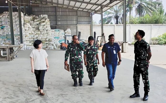 Dalam peninjauan itu, baik Dandim maupun Rafki Ismael diajak berkeliling untuk melihat proses produksi dan distribusi beras, termasuk hasil serapan gabah petani yang ada di kilang padi tersebut.