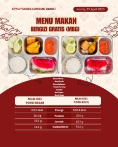 Lombok Barat, NTBRedaksi.co Program Makan Bergizi Gratis (MBG) yang dikelola melalui Dapur SPPG Polres Lombok Barat terus menunjukkan peran strategisnya dalam mendukung kesehatan dan semangat belajar generasi muda. Dengan pengelolaan yang profesional dan berbasis standar gizi, dapur ini tidak sekadar menyajikan makanan, tetapi menjadi bagian dari upaya membangun kualitas sumber daya manusia sejak dini.