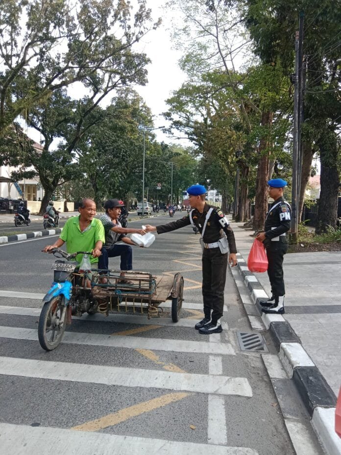 Dalam aksi sosial ini,Denpom I/5 Medan membagikan paket makanan siap saji sebagai bentuk kepedulian kepada masyarakat.