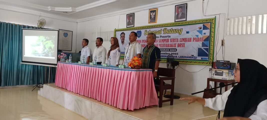 redaksi.co- Labuhanbatu. Pelatihan penelitian sampah dan limbah sampah padat dan cair di laksanakan pemerintahan Desa Kampung Padang, Kecamatan Pangkatan, Kabupaten Labuhanbatu di Kantor Desa, yang di hadiri masyarakat dari berbagai Dusun di Desa Kampung Padang, acar penyelenggaraan di pimpin Pj Aminullah Dalimunthe dan diwakili BPD Desa, juga para nara sumber dari Kabupaten Labuhanbatu dinas terkait DLH ( Dinas Lingkungan Hidup) Srymuliani br Saragih dan rombongan, mereka memaparkan cara-cara pengelolaan limbah dan sampah agar lingkungan bersih dan limbah dapat di kelola.       Rabu (26/10/2025)