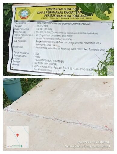 ” Jadi Paket sebesar Rp.198 jt milik perkim kota pontianak yang digaraf CV Putra Jaya Mandiri ini wajib di teteliti ulang, sesuai atau tidak proses pekerjaannya, mengingat kondisi fisiknya banyak yang retak bahkan berpotensi pecah maupun berlobang, ” terangnya