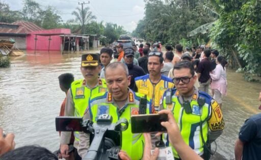 Redaksi.co (Musi Banyuasin), 9 April 2025 – Menindaklanjuti perintah Kapolda Sumatera Selatan, Irjen Pol Andi Rian R. Djayadi, SIK, MH, Direktur Lalu Lintas Polda Sumsel Kombes Pol Maesa Soegriwo, S.H, S.I.K, turun langsung ke lapangan meninjau kondisi arus lalu lintas yang terputus akibat banjir di Jalan Lintas Palembang–Jambi, tepatnya di KM 148 Desa Peninggalan, Kecamatan Tunggal Jaya, Kabupaten Musi Banyuasin.