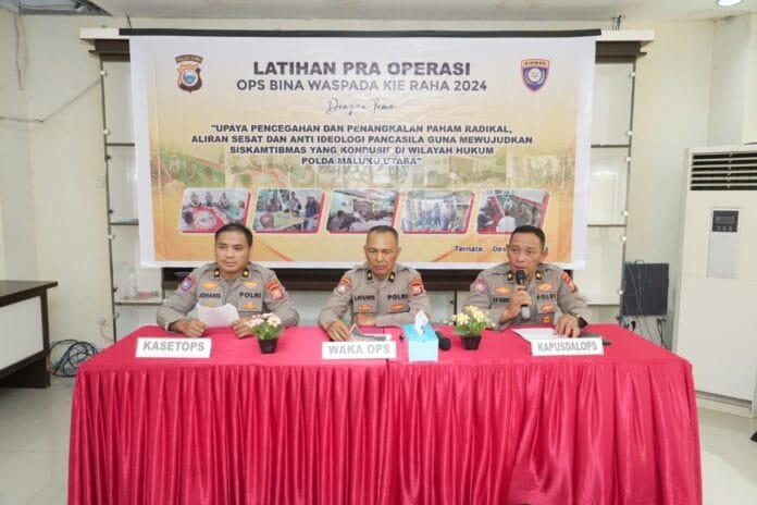 REDAKSI.CO-Polda Maluku Utara, melalui Direktorat Pembinaan Masyarakat (Ditbinmas), mengadakan Latihan Pra Operasi (Latpra Ops) Bina Waspada Kie Raha 2024. Kegiatan ini berlangsung pada Senin (16/12/2024), bertempat di Aula Rupattama Polda Malut.