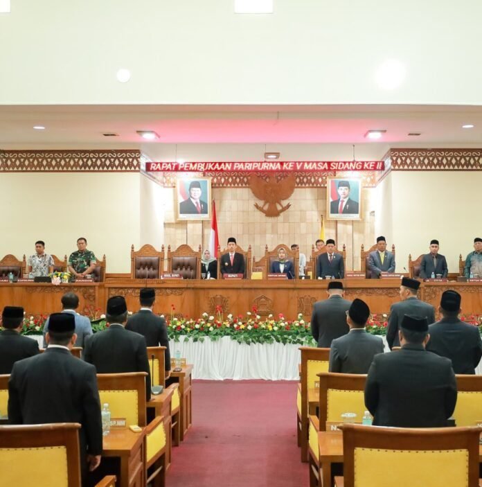 Dewan Perwakilan Rakyat Kabupaten (DPRK) Aceh Barat membuka Rapat Paripurna V Masa Sidang Ke-II Tahun 2025 dalam rangka penetapan dua rancangan qanun penting Kabupaten Aceh Barat, yang digelar di Ruang Sidang Utama DPRK, Jum’at 15/8/2025