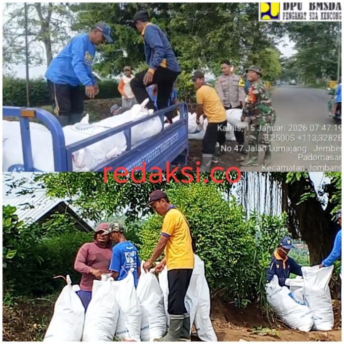JEMBER, redaksi.co – Dinas Pekerjaan Umum Pengairan dan Sumber Daya Air (DPUPR SDA) bersama Pemerintah Desa Keting melakukan penanganan darurat terhadap tangkis saluran air yang mengalami kebocoran, Kamis (15/01/2026).