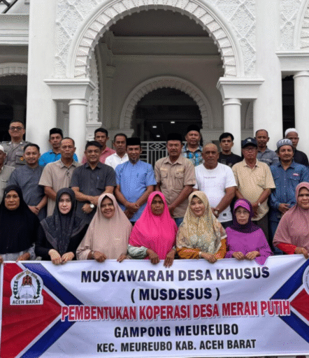 Musyawarah pembentukan Koperasi Desa “Merah Putih” ini berlangsung di Balai Musyawarah Gampong dan menjadi langkah awal dalam mendorong kemandirian ekonomi masyarakat desa.
