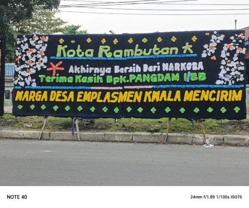 Karangan bunga yang diberikan oleh masyarakat ini, mengingat getolnya jajaran Kodam I/BB memberantas peredaran narkoba di Sumut terutama di Kota Binjai yang sudah sangat menggurita dan membuat kerusakan terhadap generasi muda.