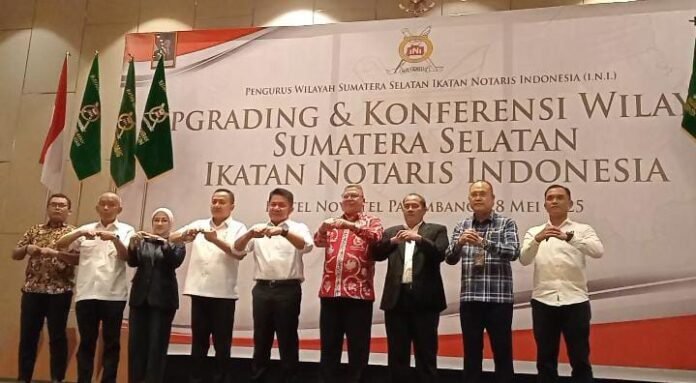 Redaksi.co | Palembang,- Pemerintah Provinsi (Pemprov) Sumatera Selatan (Sumsel) dalam hal ini Gubernur Sumsel H Herman Deru menghadiri serta membuka secara langsung dengan pemukulan gong secara bersama dengan lainnya di acara kegiatan Konferensi Wilayah (Konferwil) Ikatan Notaris Indonesia (INI) Sumatera Selatan dan Up grading 2025 Pengurus Wilayah (Pengwil) INI Sumsel. Dan kegiatan ini sendiri dipusatkan di Grand Ballroom Hotel Novotel Palembang, Rabu (28/5/2025).