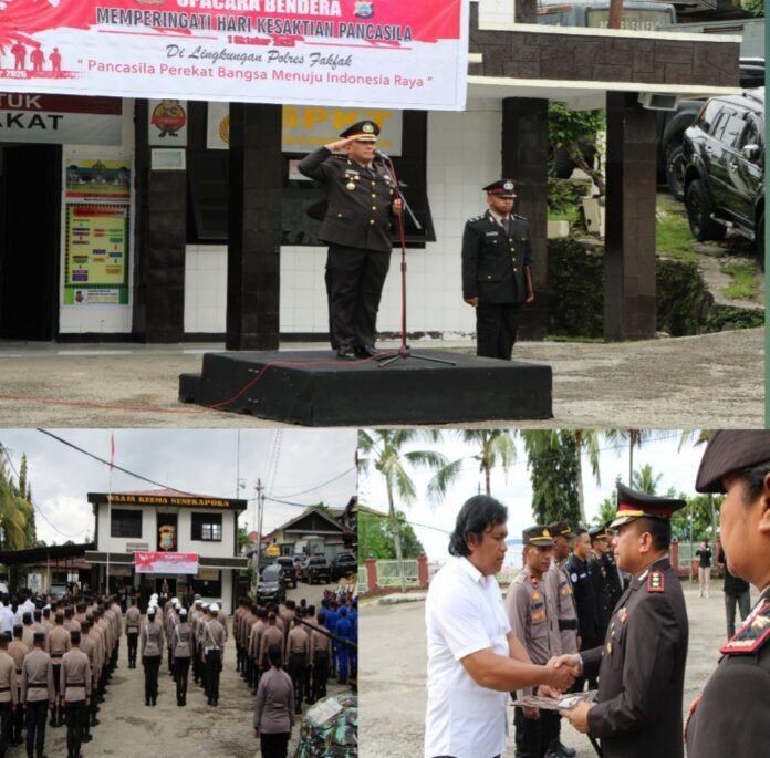 Fakfak,Redaksi.co – 1 Oktober 2025, Peringatan Hari Kesaktian Pancasila di Polres Fakfak tahun ini terasa istimewa. Selain menggelar upacara bendera yang berlangsung khidmat di halaman Mapolres, Jl. Thumburuni No.1, Distrik Fakfak, Kelurahan Fakfak Selatan, Polres Fakfak juga memberikan penghargaan kepada 57 anggotanya yang dinilai memiliki dedikasi tinggi dalam menjalankan tugas.