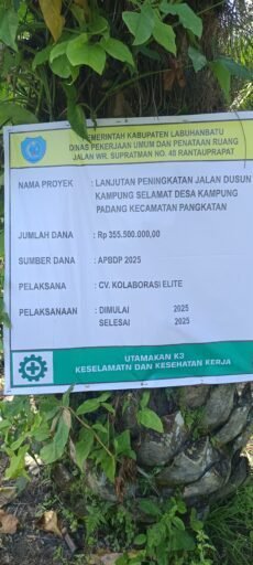 redaksi.co- Labuhanbatu-Pelaksanaan peningkatan jalan Dusun Kampung Selamat,Desa Kampung Padang, Kecamatan Pangkatan, Kabupaten Labuhanbatu, Provinsi Sumatera Utara dana APBD tahun anggaran 2025, perlu pelaksanaan nya sesuai program pemerintah karena jalan tersebut bukan semata enaknya dilihat mata ingin di pergunakan oleh masyarakat jangka panjang.Jumat tanggal(19/12/2025