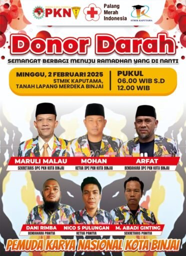 Redaksi.co Binjai – Untuk menjamin hidup sehat serta bersih dari Narkoba, maka pada Minggu (02/02/2025) DPD II PKN MJA Binjai yang dipimpin oleh Mohan atau akrab disapa Kibo melaksanakan acara Donor Darah.
