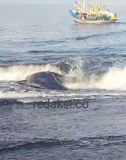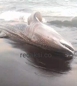 Jember, redaksi.co – Seekor hiu tutul (Rhincodon typus) sepanjang 8 hingga 9 meter dengan berat diperkirakan mencapai satu ton ditemukan terdampar di pesisir Dusun Camplung Kobong, Desa Kepanjen, Kecamatan Gumukmas, Kabupaten Jember, pada Senin (30/6) dini hari.