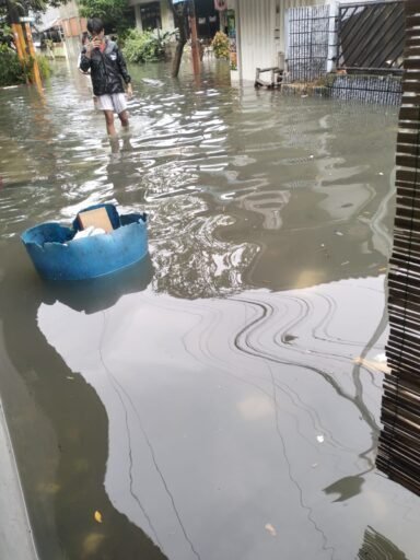 Akibat curah hujan yang tinggi dan berlangsung cukup lama, air mulai menggenangi permukiman warga dan terus meningkat di beberapa titik. Warga saat ini masih memantau kondisi banjir dan berharap hujan segera reda agar genangan air dapat segera surut.