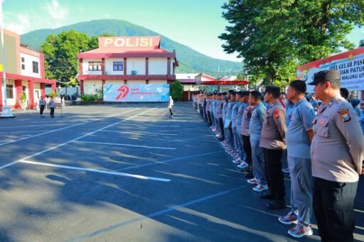 Apel pagi yang berlangsung tertib tersebut diikuti oleh para pejabat utama serta personel Polda Maluku Utara dari berbagai satuan fungsi.