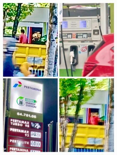 ” Kalau saya perhatikan, sepertinya sopir dump truck tersebut sudah terbiasa ngambil BBM disitu. Lihat saja, begitu datang, bisa melakukan pengisian sendiri tanpa adanya larangan, tegoran atau arahan dari operator SPBU setempat, ” ungkap Aldi, agak heran.