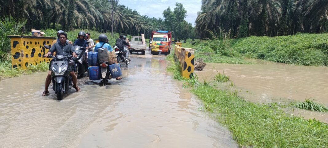 Ini perlu dalam perhatian pemerintah Kabupaten Labuhanbatu terkait untuk mengatasi agar jalan tersebut tak dapat lagi di lintasi saat air meluap karena medannya terjadi selalu banjir aliran nya terlalu sempit dan kurang dalam, apa salahnya pemerintah Kabupaten Labuhanbatu mengambilsikap dalam rangka memperluas dan memperdalam aliran itu, itulah harapan masyarakat satu-satunya.