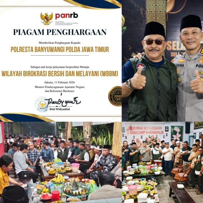BANYUWANGI – JAKARTA, Predikat Zona Integritas Wilayah Birokrasi Bersih dan Melayani (ZI-WBBM) Tahun 2025 resmi dianugerahkan Kementerian PAN-RB kepada Polresta Banyuwangi Polda Jawa Timur, sebagaimana keputusan yang diumumkan pada Rabu, 11 Februari 2026 di Jakarta.