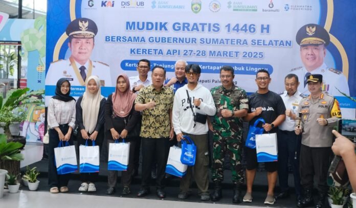Redaksi.co | Palembanh – Menjelang hari raya Idul Fitri 1446 H, PT Kereta Api Indonesia (Persero) Divisi Regional III Palembang bersama Dishub Provinsi Sumatera Selatan dan Bank Sumsel Babel memberangkatkan peserta mudik gratis di Stasiun Kertapati yang menggunakan KA Bukit Serelo relasi Kertapati-Lubuklinggau dan KA Rajabasa relasi Kertapati-Tanjungkarang pada Kamis (27/3/2025).