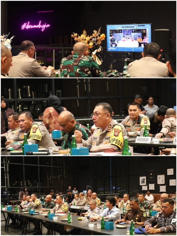Batam – Dalam rangka menyambut pergantian Tahun Baru 2025, Kapolda Kepri, Irjen. Pol. Drs. Yan Fitri Halimansyah, M.H., bersama jajaran Polda Kepri turut mengikuti video conference (vicon) yang dipimpin langsung oleh Kapolri. Kegiatan ini juga diikuti serentak oleh 34 Polda dari seluruh Indonesia untuk melaporkan kesiapan pengamanan dan pemeliharaan keamanan serta ketertiban masyarakat (Kamtibmas) selama perayaan tahun baru. (1/1/2025).