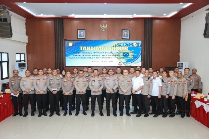 REDAKSI.CO- Kepala Kepolisian Daerah Maluku Utara Irjen Pol. Drs. Waris Agono, M.Si. memimpin Kegiatan Taklimat Akhir Audit Kinerja Itwasda Tahap I Aspek Perencanaan dan Pengorganisasian pada Satker dan Satwil Jajaran Polda Maluku Utara T.A. 2025 yang dilaksanakan di Aula kieraha Polda Maluku Utara. Selasa, (10/6).