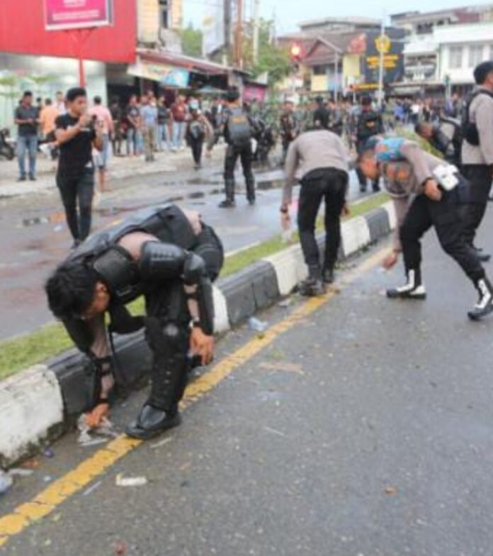 Usai aksi demonstrasi yang berlangsung di halaman Kantor Dewan Perwakilan Rakyat Kabupaten (DPRK) Aceh Barat, Kapolres Aceh Barat AKBP Yoghi Hadisetiawan, S.I.K., M.I.K., langsung memerintahkan jajarannya untuk melakukan pembersihan sampah di lokasi kegiatan aksi demo, Senin 1/9/2025