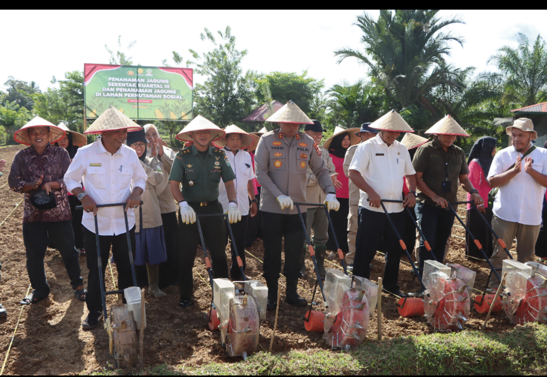 Kapolres Aceh Barat, AKBP Yhogi Hadisetiawan, S.I.K., M.I.K., memimpin langsung kegiatan Penanaman Jagung Serentak Kwartal III Tahun 2025 di lahan perhutanan sosial Gampong Meutulang, Kecamatan Panton Reu, Rabu (9/7/2025). Kegiatan ini merupakan bagian dari program swasembada pangan nasional Asta Cita Presiden RI Prabowo Subianto.
