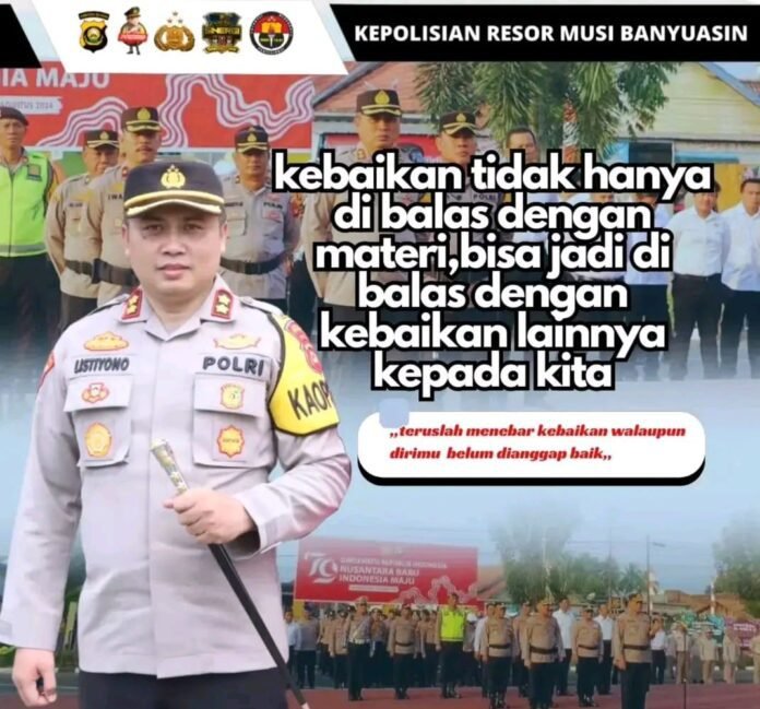 Redaksi.co, Sekayu, Musi Banyuasin – Baru-baru ini beredar surat telegram (TR) Kapolri yang mengumumkan rotasi internal di Polda Sumsel. Salah satu perubahan signifikan adalah penggeseran posisi Kapolres Muba, AKBP Listyono Dwi Nugroho, S.I.K., M.H., yang kini akan menjabat sebagai Wadirkrimsus Polda Sumsel. Penggeseran ini tentu membawa dampak positif, karena dipercaya akan semakin memperkuat kinerja Polda Sumsel, mengingat berbagai prestasi gemilang yang telah diraih oleh AKBP Listyono selama bertugas di Musi Banyuasin.