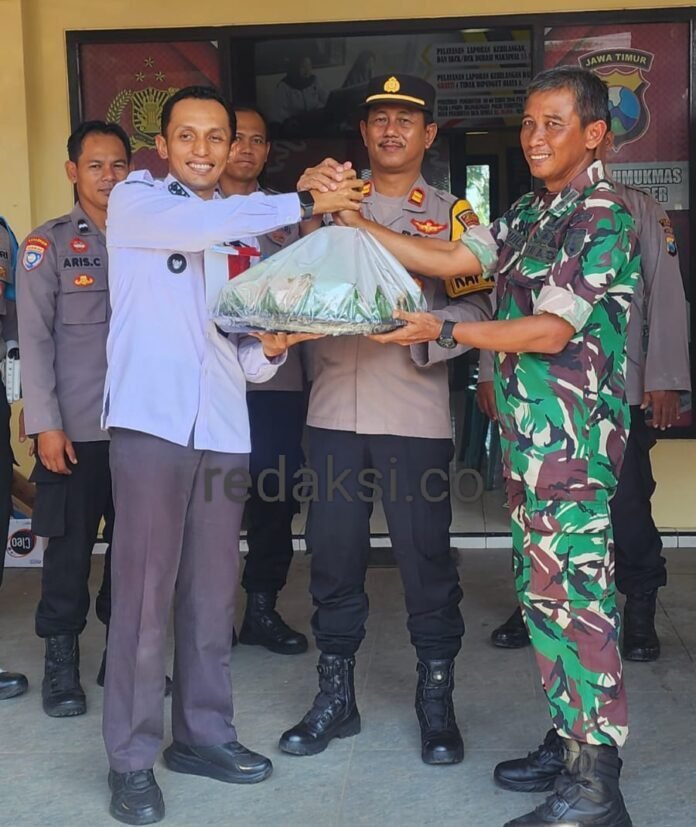 Bertempat di Mapolsek Gumukmas, kegiatan yang berlangsung mulai pukul 12.00 hingga 14.00 WIB itu berlangsung dalam suasana hangat dan penuh kekeluargaan. Sebuah tumpeng sebagai simbol rasa syukur diserahkan langsung oleh Camat Gumukmas, Nino Eka Putra, S.STP., M.Si., didampingi Danramil Gumukmas, Kapten Arm Teguh Hariyanto.