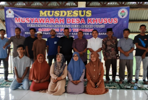 Pemerintah Kecamatan Pante Ceureumen, Kabupaten Aceh Barat, menunjukkan komitmen tinggi dalam mendukung percepatan pembentukan Koperasi Merah Putih sebagai program strategis nasional. Hanya dalam tiga hari pasca pelaksanaan sosialisasi pada Selasa, 19 Mei 2025, seluruh gampong di kecamatan tersebut berhasil menyelenggarakan Musyawarah Desa Khusus (Musdessus) sebagai tahap awal pendirian koperasi.