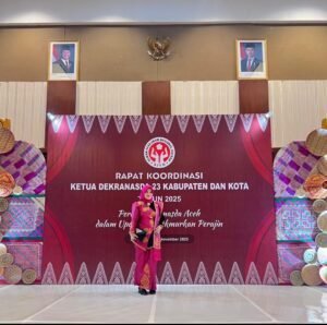 Ketua Dewan Kerajinan Nasional Daerah (Dekranasda) Aceh Barat, Ny. Afrinda Novalia, SE, MM turut hadir dalam Rapat Koordinasi (Rakor) Dekranasda tingkat provinsi bersama 23 kabupaten/kota lainnya di Hermes Palace Hotel, Banda Aceh, Sabtu 8/11/2025