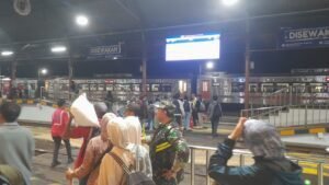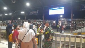 Personel gabungan melaksanakan pemantauan dan pengamanan secara terpadu di area stasiun serta sekitarnya, memastikan arus penumpang berjalan lancar. Berdasarkan hasil pemantauan, arus mudik penumpang baik dari arah barat maupun timur terpantau aman dan terkendali.