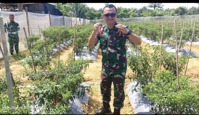 Kompi Produksi Menuai Hasil Melimpah, Dandim 0105/Abar Memetik Hasil Panen Cabe Merah