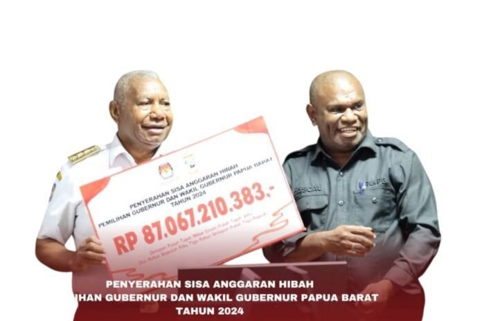Paskalis Semunya mengatakan, sisa anggaran Hibah Pemilihan Serentak Tahun 2024 yang dikembalikan oleh KPU Provinsi Papua Barat sebesar Rp. 87 Miliar lebih dari total anggaran hibah yang tertuang dalam Naskah Perjanjian Hibah Daerah (NPHD) antara Pemerintah Provinsi Papua Barat dan KPU sebesar Rp. 200,032 Miliar.